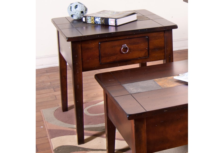 Sunny Designs Santa Fe End Table With Slate Tiles And Utility