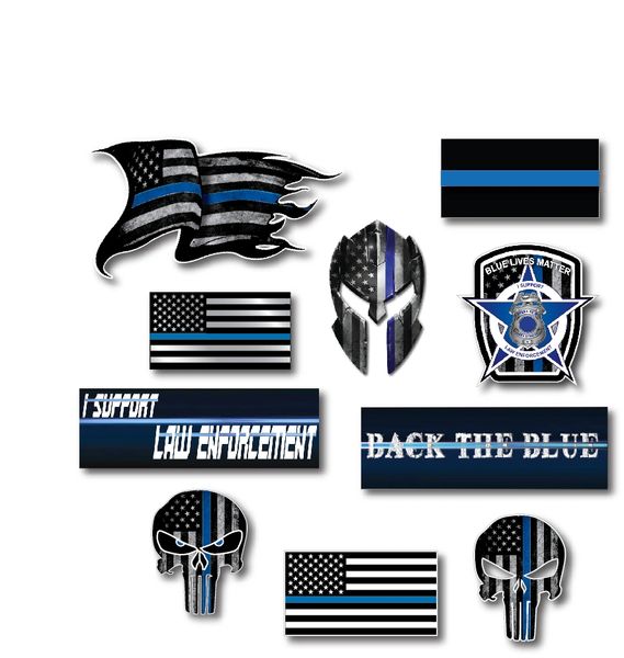 10 Pack Of Thin Blue Line Punisher Skull Molon Labe Flag Officer