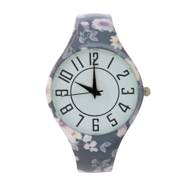 Metal Cuff Watch With Floral Design And Large Numbered Face